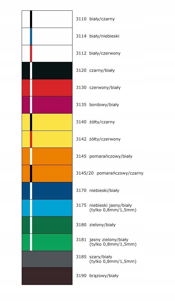 Kolory do wyboru według wzornika